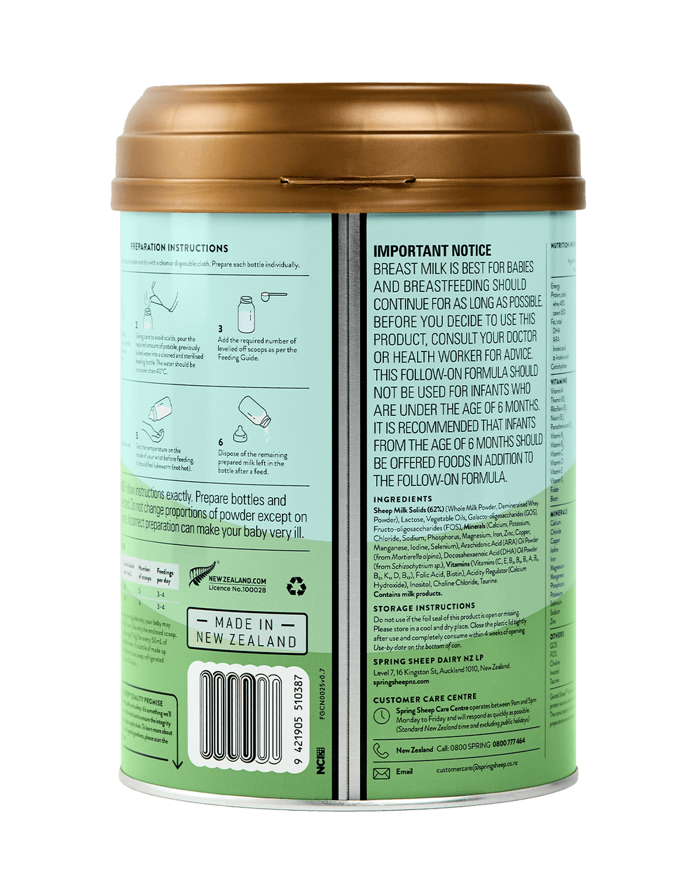 Gentle Sheep® Follow-On Formula is based on premium New Zealand sheep milk.