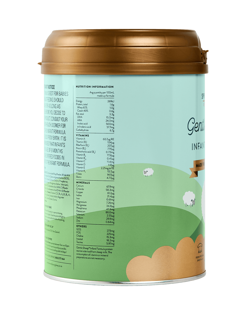 Gentle Sheep® Premium Infant Formula is specially formulated to meet the nutritional requirements from 0 to 6 months. This nutritionally complete formula provides key nutrients required for young infants.